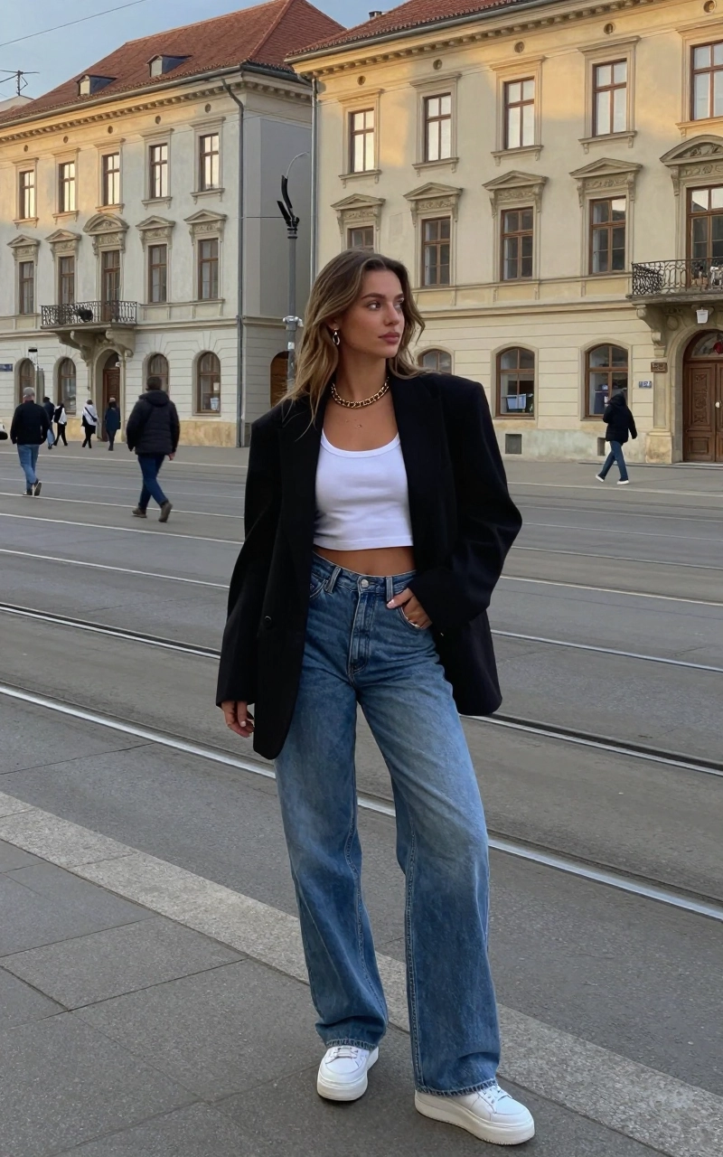 The oversized blazer adds a touch of sophistication to your relaxed look.