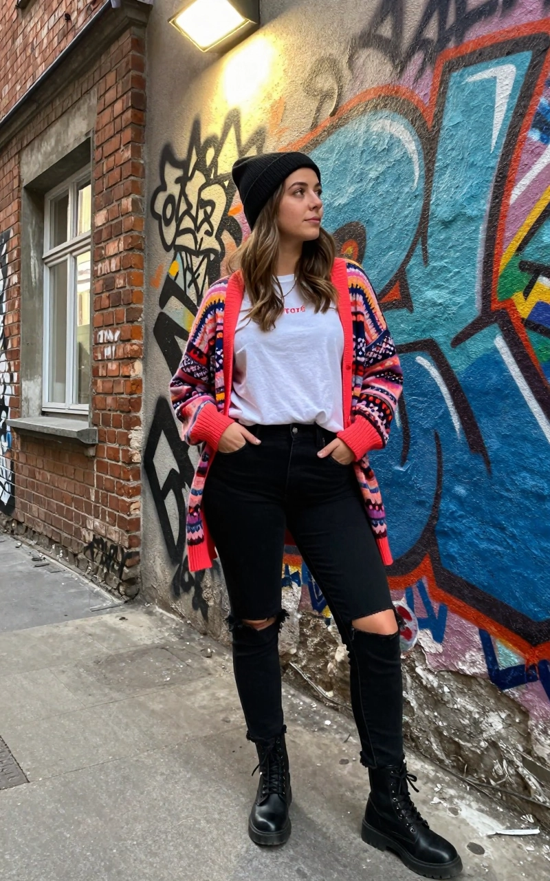 Show off your creative side with an outfit that blends comfort and unique flair.