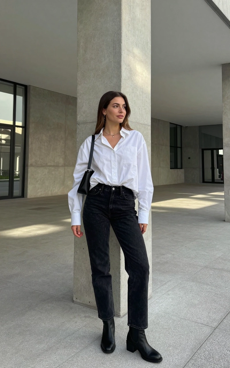 Embrace clean lines and sophisticated simplicity with this effortlessly cool outfit.