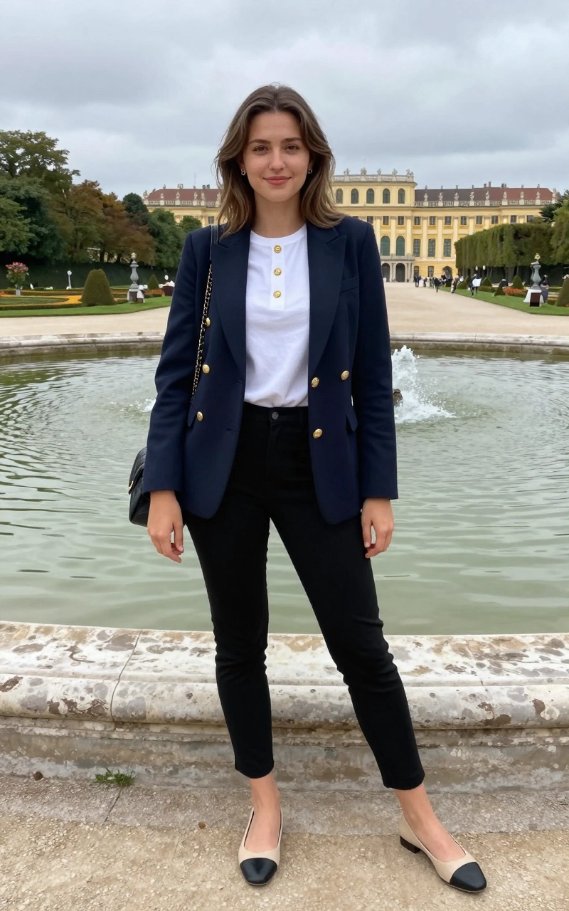 The blazer and jeans combo is the ultimate uniform for a very stylish city girl.