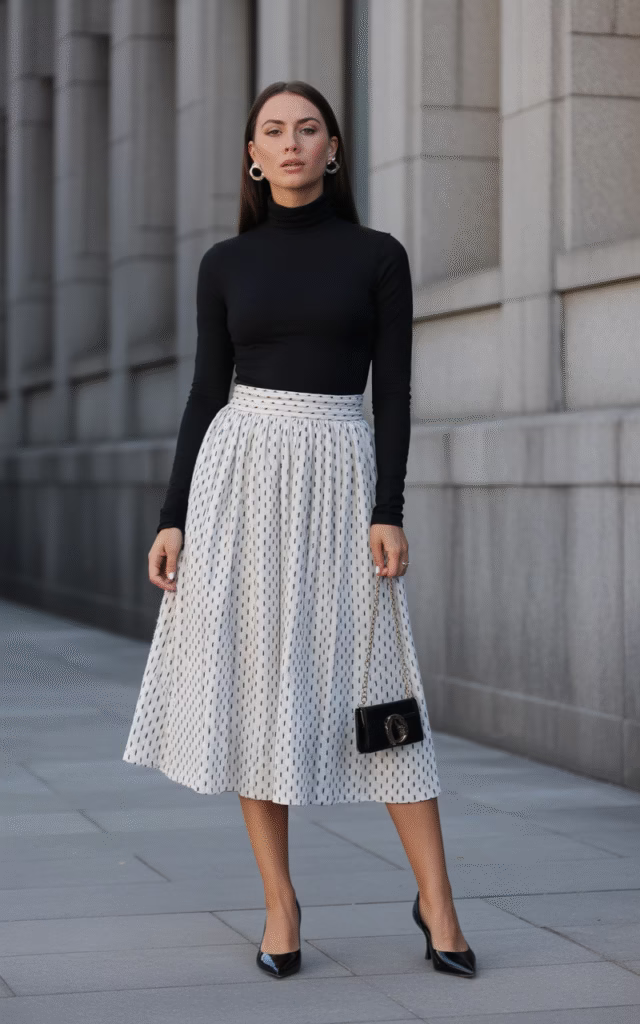 My sister wore a black and white polka dot skirt like this for a church brunch.