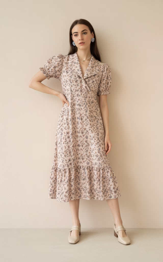 I once saw a celebrity wearing a dress with a retro floral print just like this, it was so charming.